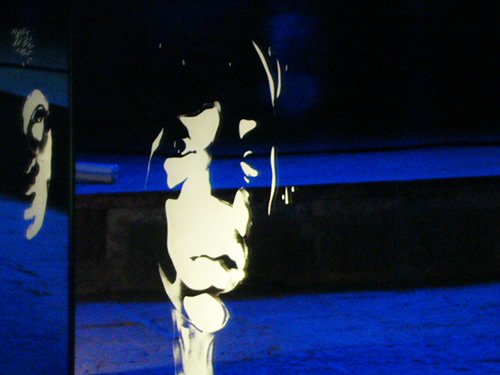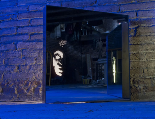 Fotografías de las piezas tranformando el espacio, la luz y siempre en continua transformación, obra cambiante, abriendo nuevos espacios en la dimensión de lo virtual, realidades irreales y de espejismo.