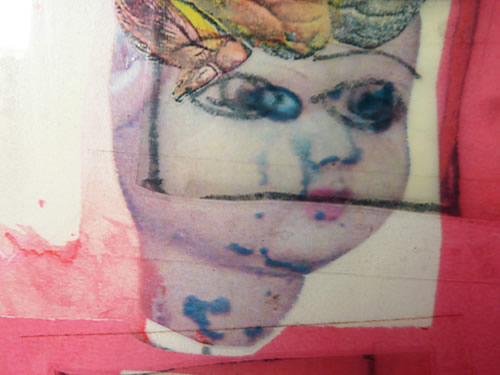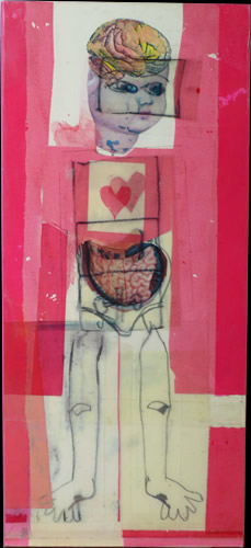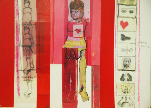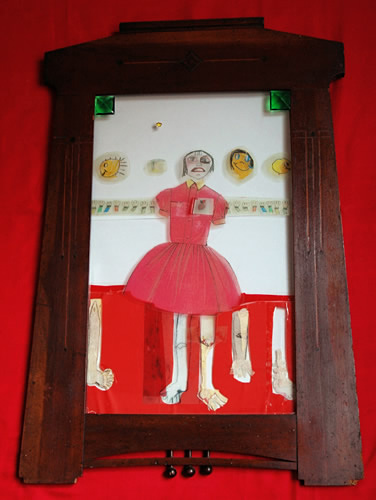 Pintura collage encapsulada entre vidrios. Composición de un cuerpo. : 46 x 66cm.