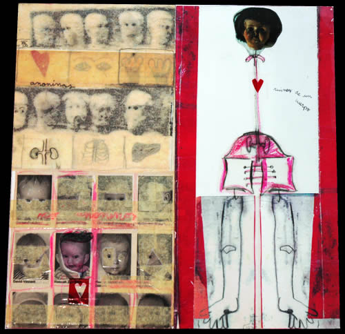Série de pinturas realizadas en collage sobre madera, técnica mixta. Piezas individuales que se van montando en orden consecutivo.